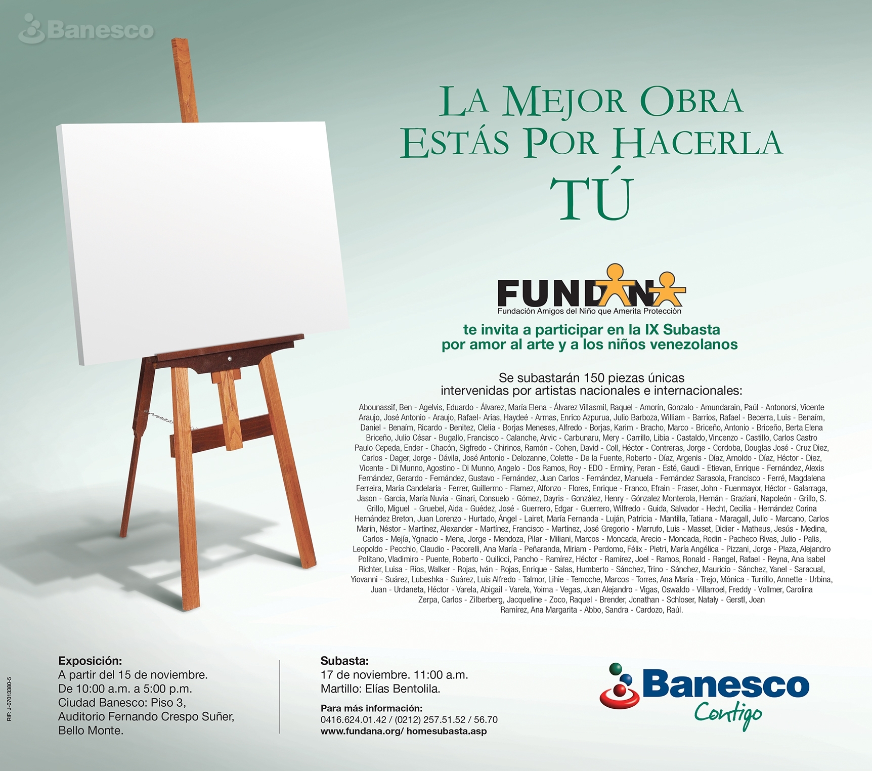 Por noveno año consecutivo, los amantes del arte se dieron cita en el auditorio Fernando Crespo Suñer de Ciudad Banesco para participar en la "IX subasta a beneficio de los chiquiticos de FUNDANA".