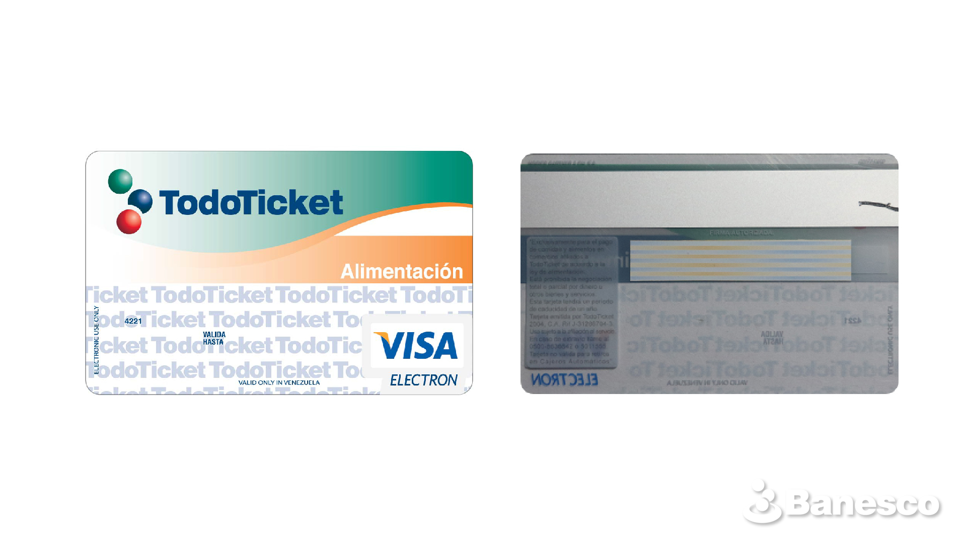 Modelo de Tarjeta Tarjeta TodoTicket Alimentación Visa Electron.