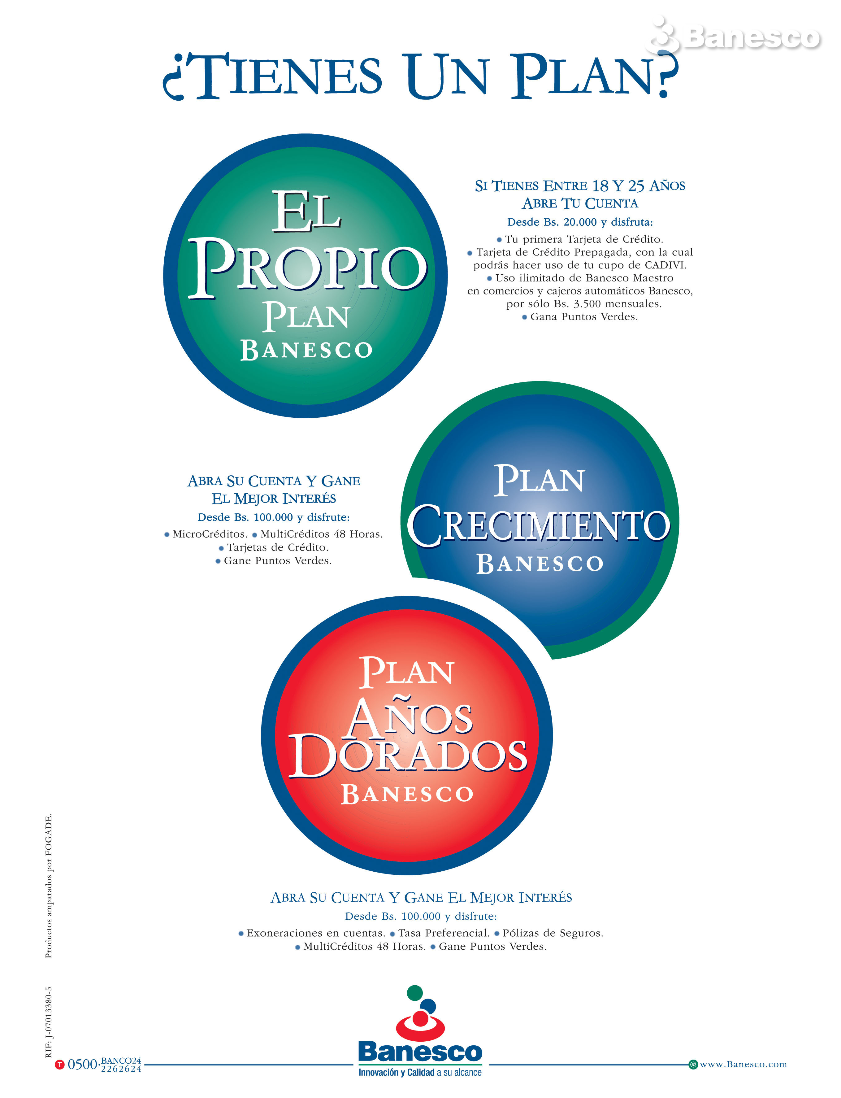 Abra su cuenta y gane el mejor interés con el Propio Plan, Plan Crecimiento y Plan Años Dorados.