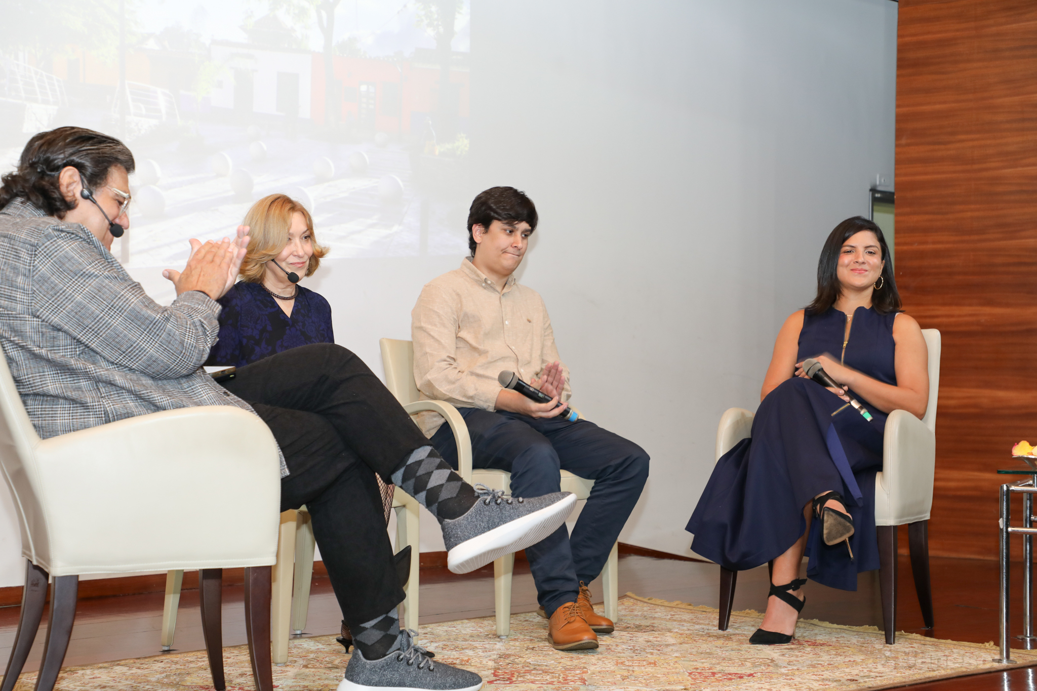 Gildre Aquino y Tomás Caeiro, ambos profesores de la Facultad de Arquitectura y Urbanismo de la Universidad Central de Venezuela conversaron junto a los moderadores Enrique Larrañaga, arquitecto y profesor; y Maruja Dagnino periodista, durante el bautizo del libro "Nuevo país de la arquitectura", evento realizado en el mes de diciembre en el auditorio Fernando Crespo Suñer de Ciudad Banesco.