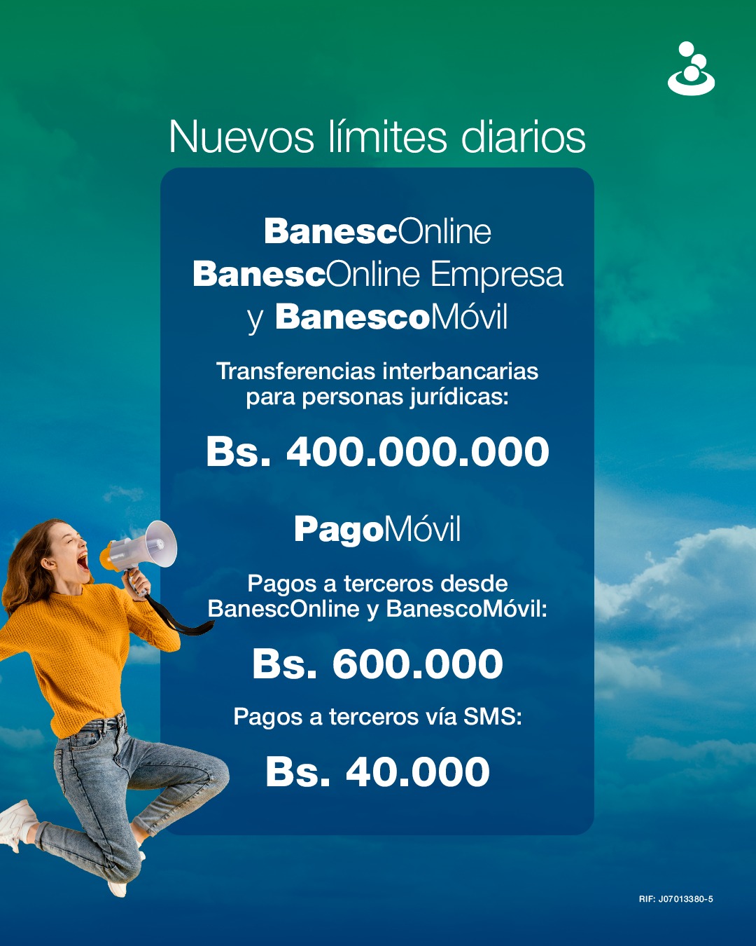 Recuerda que en www.banesco.com puedes consultar nuestros límites diarios.