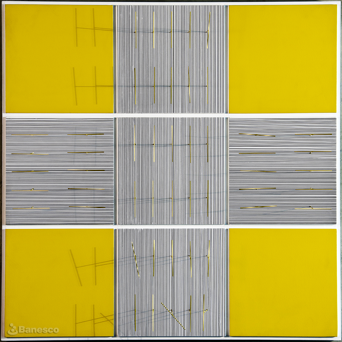 Artista: Jesús Rafael Soto Técnica: Mixta sobre madera Dimensiones: 94 x 94.4 x 5.4 cm. Categoría: Ensamblaje Fotógrafo: Carlos Germán Rojas