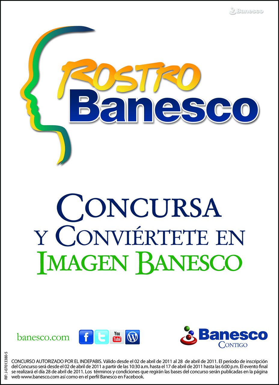 Concurso ''Rostro Banesco'', el cual pedía como requisito que los interesados ingresaran al Fan Page de Banesco Banco Universal para registrarse y subir un video en el que explicara por que consideraba que debía ser el próximo Rostro Banesco.