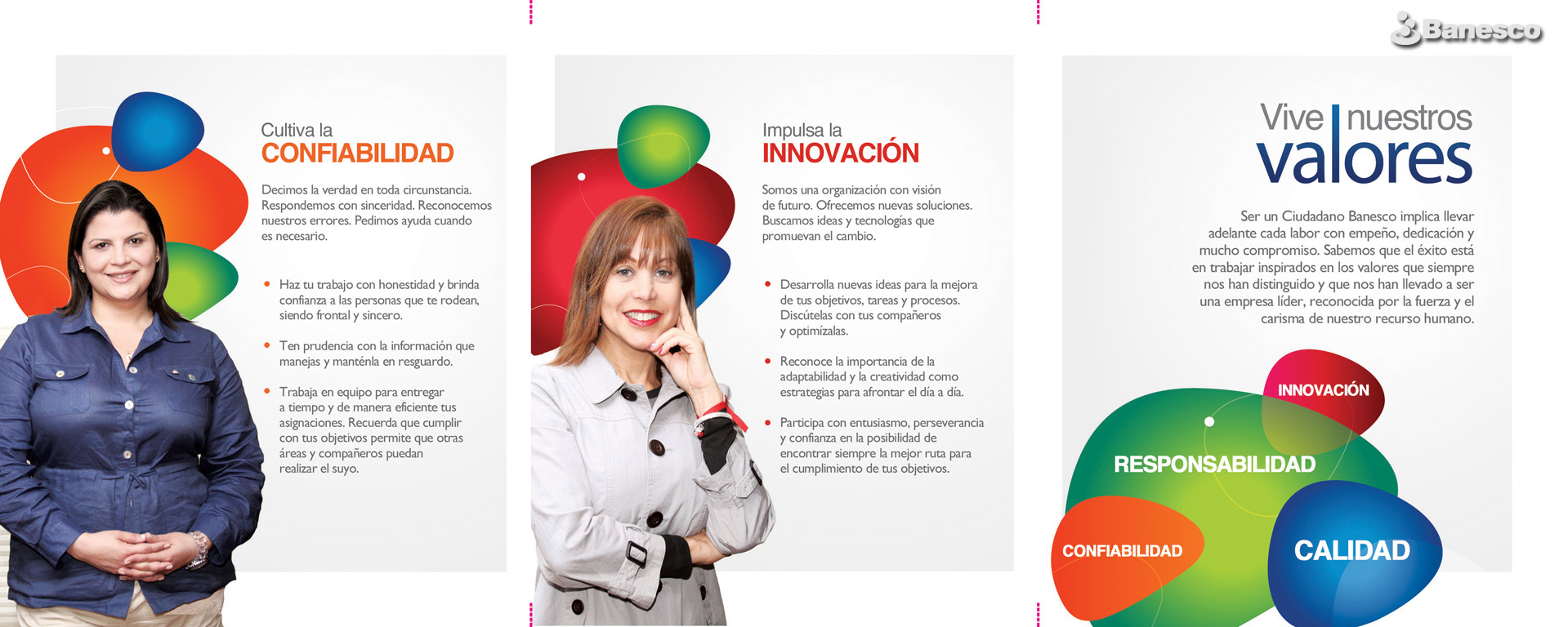 Significado de dos de los Valores Banesco: Confiabilidad e Innovación. Los valores que caracterizan a Banesco Banco Universal son: la responsabilidad, la calidad, la confiabilidad y la innovación.