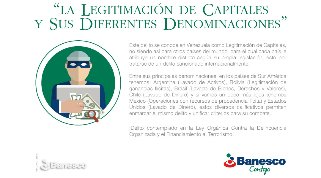 Informar a los clientes como se conoce a la Legitimación de Capitales en otros países al tratarse de un delito sancionado internacionalmente.