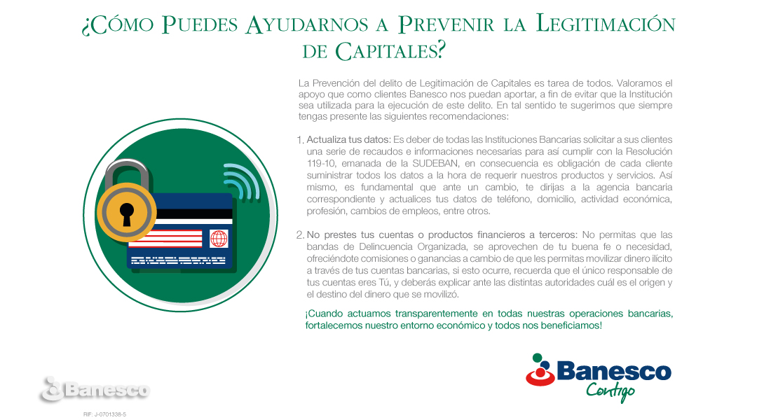 El objetivo de esta campaña es hacer recomendaciones a los clientes para involucrarlos activamente en el proceso de prevención contra la Legitimación de Capitales.