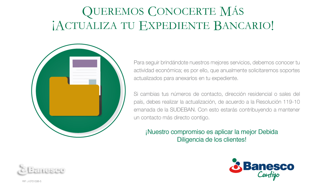 Dar a conocer a los clientes las debidas diligencias que practica del banco para actualizar los expedientes.