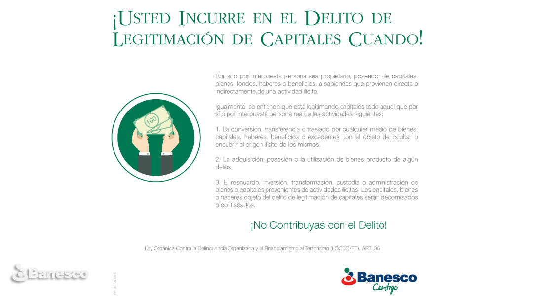 Dar a conocer que por sí o por interpuesta persona, poseedor de capitales, bienes, fondos, haberes o beneficios, que provienen directa o indirectamente de una actividad ilícita, automáticamente se entiende que está legitimando capitales