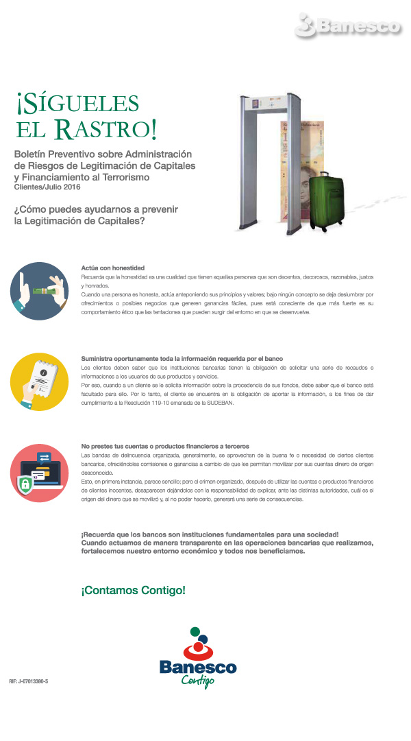 Informarle a nuestros Clientes Banesco "Como Pueden Ayudarnos a Prevenir la Legitimación y Capitales"