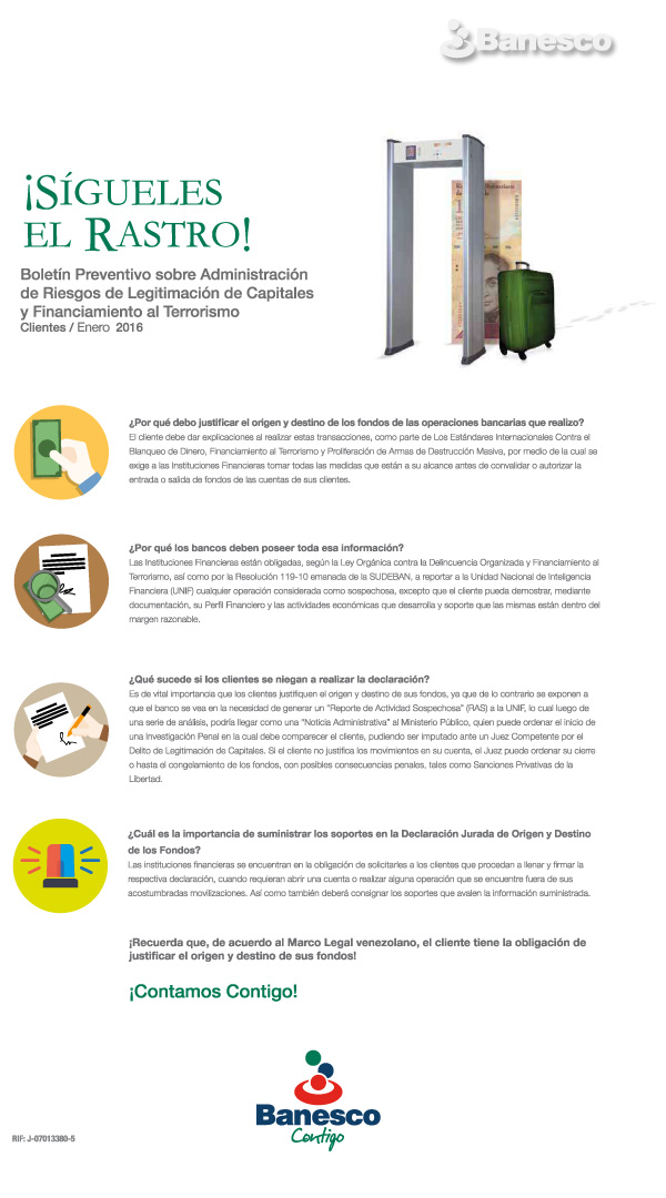 Informarle a nuestros clientes el motivo por el cual tienen la obligación de justificar el origen y destino de sus fondos y el porque el banco posee toda esa información confidencial