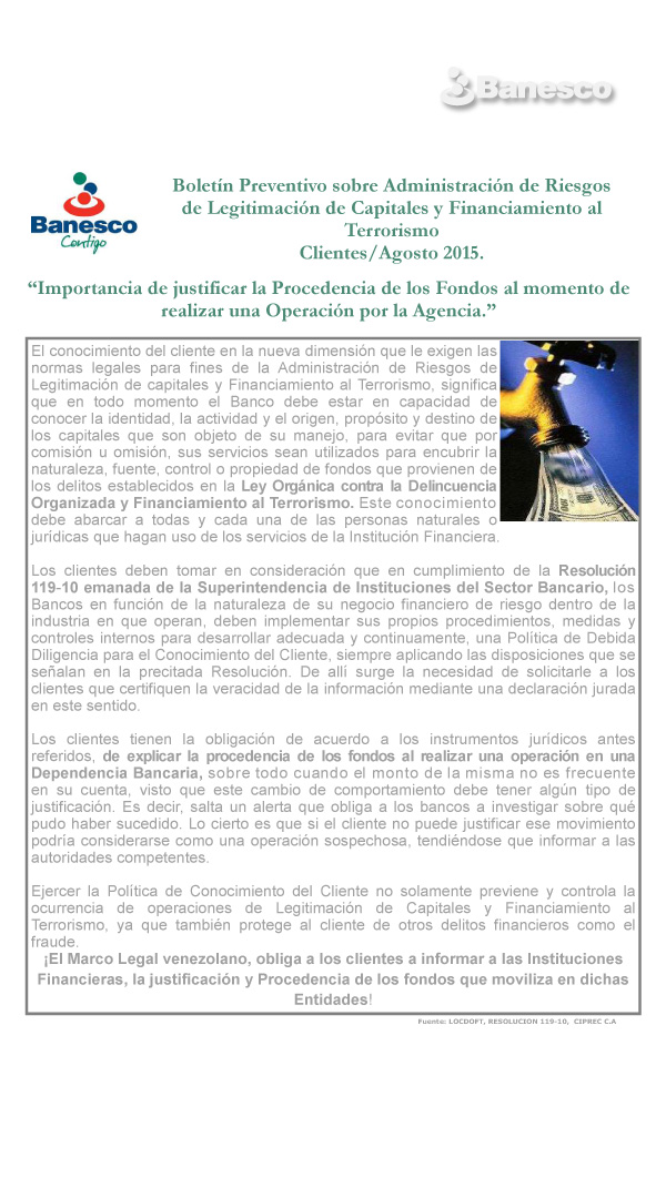 Importancia de justificar la Procedencia de los Fondos al momento de realizar una Operación por la Agencia
