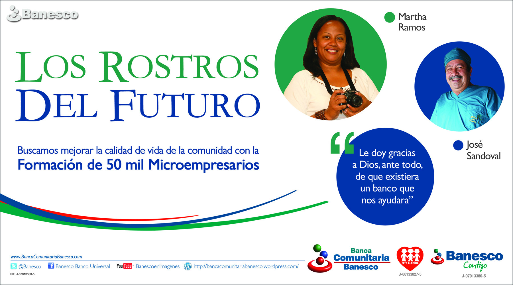 Material P.O.P presentado para la publicidad del Programa de Formación de Microempresarios, con la foto de Martha Ramos y José Sandoval.