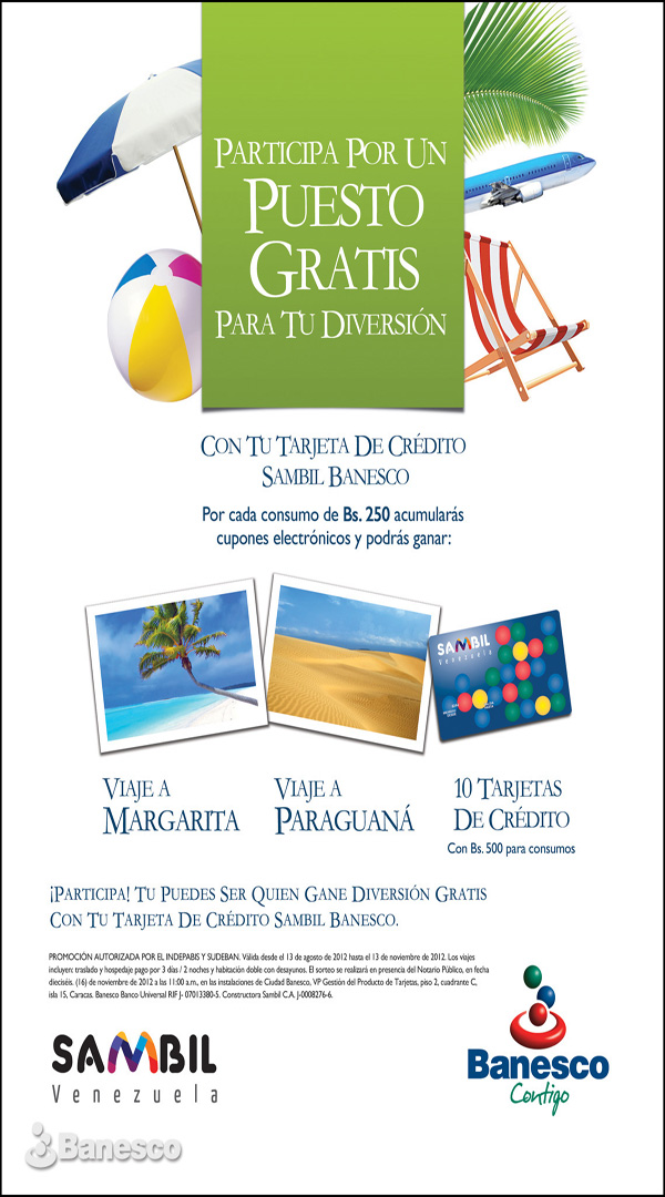 Diversión gratis con tus Tarjetas de Crédito Sambil Banesco. ¡Participa!, tú puedes ser quien gane.