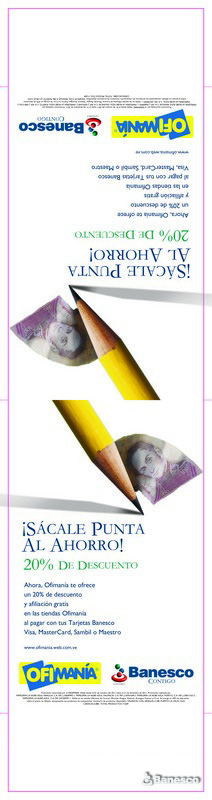 TentCard Ofimanía Banesco para la promoción: Sácale punta al ahorro, 20% de descuento.