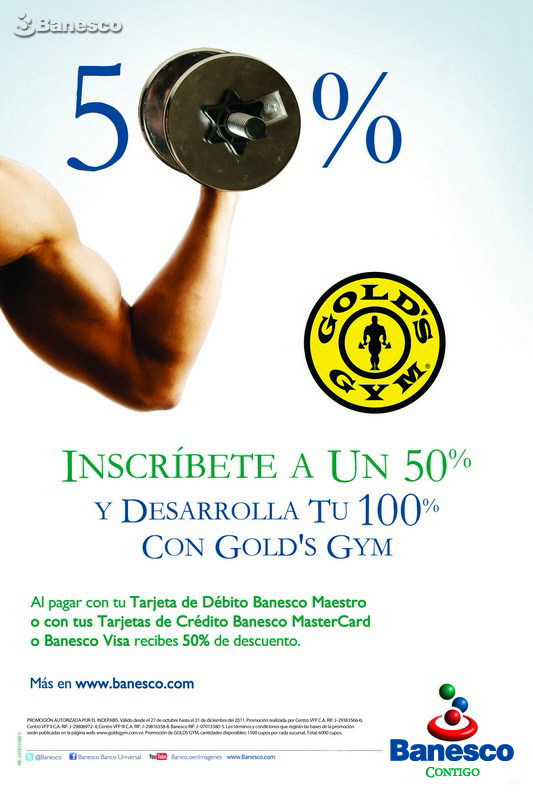 Promoción Inscríbete a un 50% y Desarrolla un 100% con Gold´s Gym